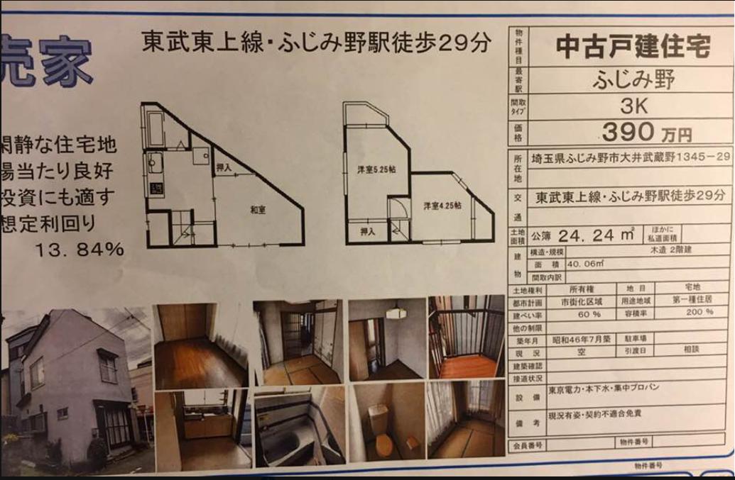 中古戸建住宅で面積が狭いので、業者はないであろう。